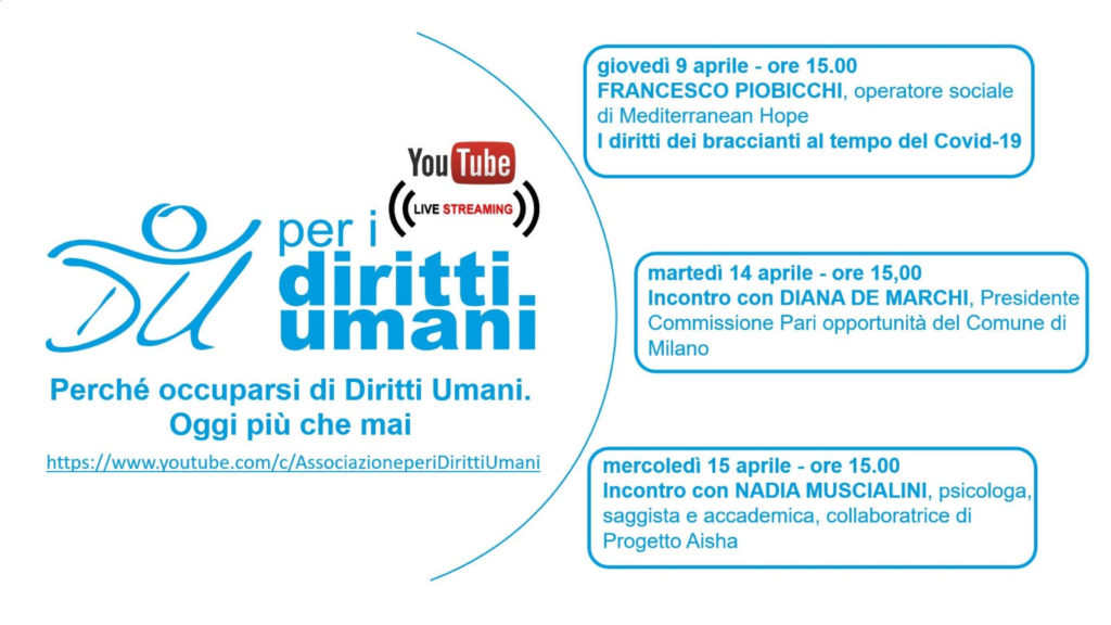vi ricordiamo i prossimi streaming organizzati da Associazione Per i Diritti umani, con il sostegno del C.I.D.U.
