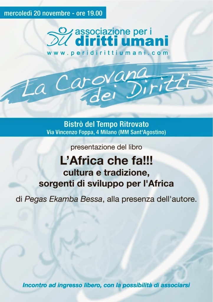 vi presentiamo il prossimo appuntamento con la carovana dei diritti: si tratta della presentazione del libro di Pegas Ekamba Bessa dal titolo: