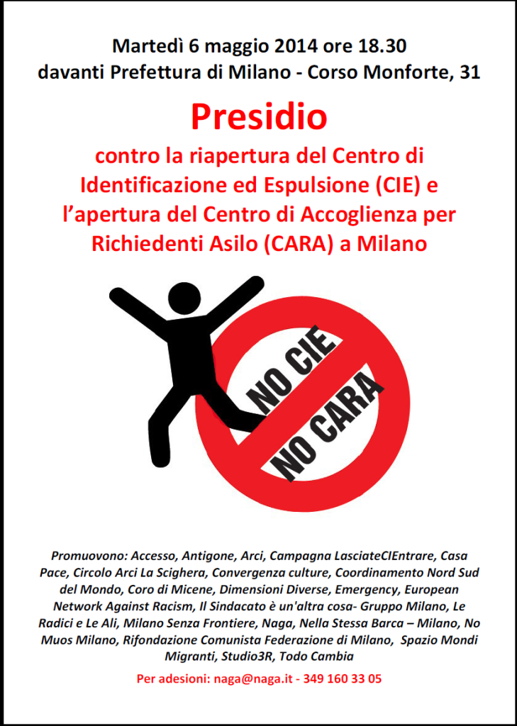 ore 18.30, in Corso Monforte, 31 a Milano, davanti alla Prefettura.