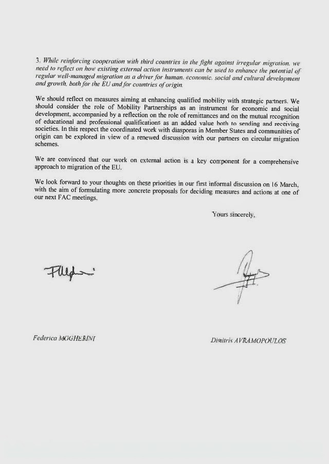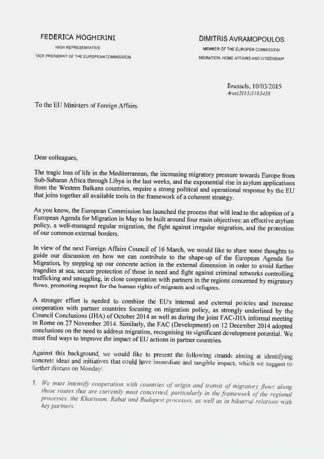 | Bruxelles: la scorsa settimana si è riunito il Consiglio dei Ministri degli Esteri e ha trattato anche del tema dell’immigrazione. Ecco la lettera inviata da |