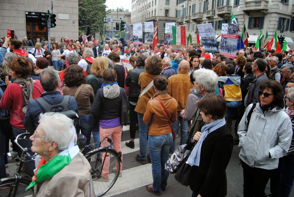 Oggi, 25 aprile 2015, Milano ci ha fatti sentire orgogliosi di appartenere a questa città: per il 70mo anniversario della Liberazione, tanti, tantissimi sono scesi in piazza. Una manifestazione, nel primo tratto, composta e rispettosa poi, via via sempre più musicale e colorata. Bandiere, striscioni, cartelli, facce, sorrisi, colori. Questi sono i milanesi, gli stranieri, gli italiani che vogliamo vedere: di tutte le età, di tutte le nazionalità, di tutti i generi, di tutte le estrazioni INSIEME per ricordare un Passato che ha posto le basi per la nostra vita e per i valori di libertà, giustizia e democrazia.