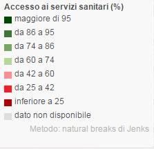 cartina qui in alto rappresenta l’accesso ai servizi sanitari in