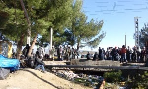12.30: La situazione è veramente tesa e complicata. Unità speciali greche hanno circondato i manifestanti che stanno bloccando il passaggio. Massicce azioni con gas lacrimogeni e al pepe contro i manifestanti che cercano di raggiungere il gruppi circondati alla barriera. Centinaia di siriani attendono nella campagna accanto al campo. Parte del campo A è chiuso per coloro che non possono passare il confine. La polizia greca è in qualche modo presente all’ingresso del complesso. Nella stazione dei treni c’è un treno che partirà per Atene fra le 13.00 e le 14.00. La polizia chiede alla gente di prendere questo treno. L’UNHCR non è presente. La infrastruttura ufficiale e istituzionale è crollata. C’è disperazione e rabbia. Ci sono voci su una persona che si sarebbe suicidata un’ora fa. C’è poca presenza dei media. Naturalmente c’è solo una soluzione a questa catastrofe voluta: il confine deve essere aperto.
