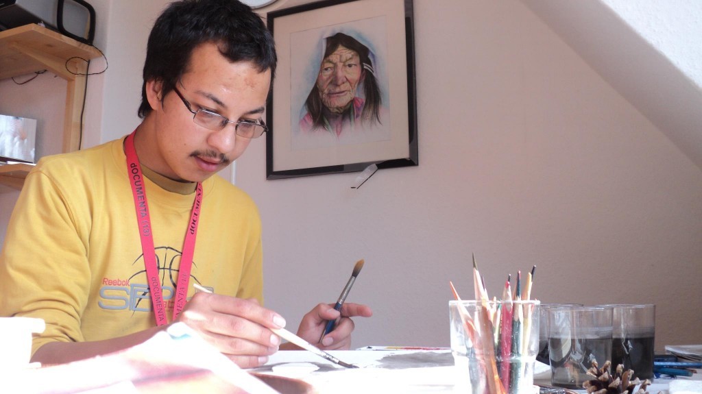Le radici del lavoro del giovane artista affondano nella tradizione indo-iraniana e Rumi è uno dei suoi filosofi di riferimento, per il quale la morte è soltanto l’inizio di un nuovo percoso dello spirito: forse, per questo motivo, alcune opere hanno un carattere circolare, per ricordare il grande Ciclo della Natura e della Vita stessa che non può essere fermato da alcuna guerra; la scrittura utilizzata nelle parole incastonate nei suoi quadri diventa anche decorativa per un manifesto di libertà e giustizia; il tessuto narrativo (di immagini e parole) può sembrare antico, ma rimanda necessariamente all’attualità, in un gioco creativo che lega il Passato al Presente per ricordare quanto sia importante la Memoria per non ripetere sempre gli stessi errori.