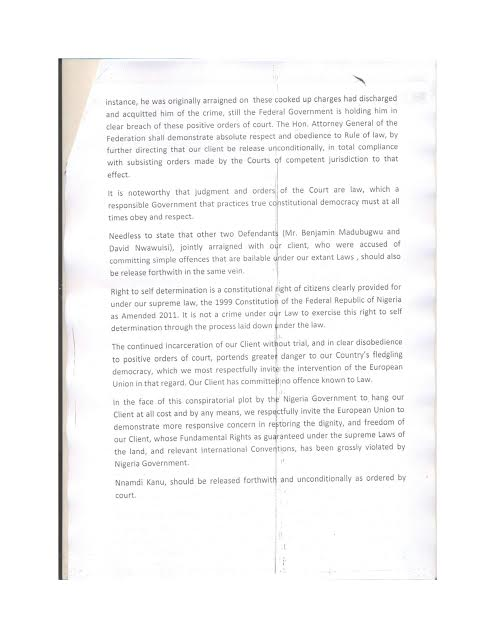 Please, we appeal to you world leaders,to help release our leader Mr Nnamdi KANU who is currently held in the Nigerian prison without trial, simply because he asked for the freedom of his people,from the British creation called Nigeria.God bless you all.