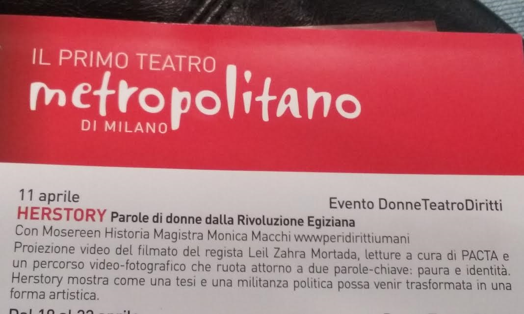 L’Associazione per i Diritti umani è felice di essere presente l’ 11 aprile con lo spettacolo HERSTORY – Parole di donne dalla rivoluzione egiziana. Scritto e ideato da Monica Macchi.