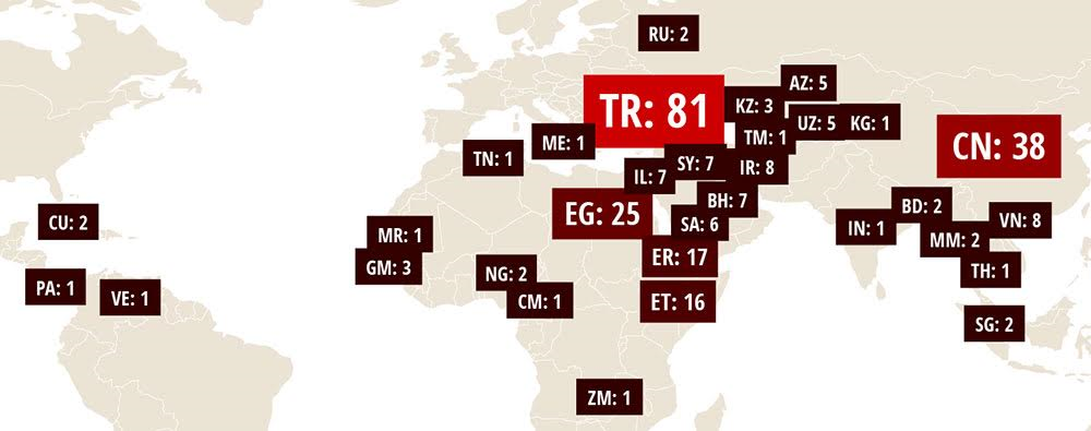 Solo in Turchia sono attualmente in carcere 81 giornalisti (con il drammatico record di 140 dopo il tentativo di colpo di stato militare fallito nel mese di luglio) più altri 67 casi “dubbi” in cui non si è riusciti a confermare un nesso di causalità tra l’attività giornalistica e la carcerazione.