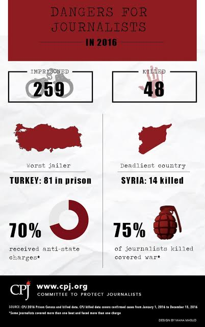Il CPJ ha documentato almeno 48 morti legate al lavoro di giornalista e 259 arresti (dati fino al 1 dicembre).