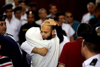 5° posto: Abbraccio in tribunale tra Ahmed Aref ( portavoce dei Fratelli Musulmani) e la moglie ( foto di Ibrahim Ezzat Hendy)
