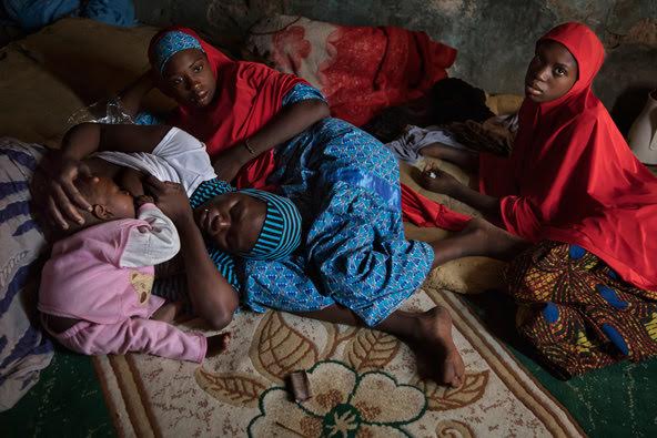 Il suo ultimo lavoro riguarda le ragazze rapite e poi liberate o scappate da Boko haram in Nigeria che tornano ai loro villaggi con i figli nati durante la prigionia e che incontrano moltissime difficoltà a reinserirsi, dal biasimo sociale, ai problemi economici alla paura e diffidenza: il 75% degli attentatori suicidi nell’ultimo anno erano ragazze e quindi i nigeriani diffidano della loro lealtà e temono che abbiano subito il lavaggio del cervello e siano irrecuperabili. Per questo vivono ai margini abbandonate anche dai loro parenti molti dei quali del resto sono stati uccisi nel tentativo di impedire il rapimento come testimonia Hawa, rapita a 14 anni a Bama, la seconda più grande città del Borno: “I miei genitori si sono rifiutati di darmi in matrimonio, così li hanno uccisi di fronte a me!”