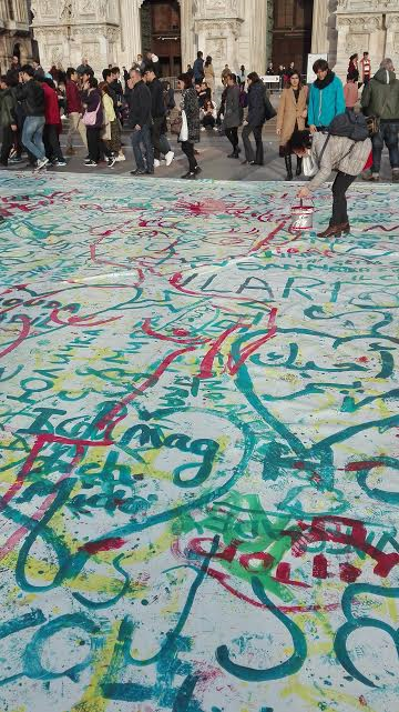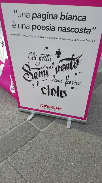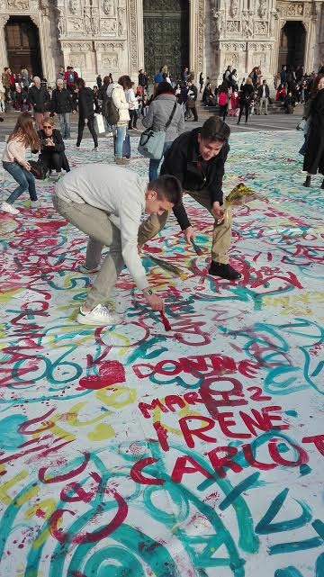 Ivan Tresoldi, poeta di strada e Street artis, ha organizzato una performance di arte pubblica, davanti al Duomo, intitolata “La grande pagina bianca”. In collaborazione con Fare del Bene Onlus, Ivan ha fatto stendere un grande foglio bianco che, con il trascorrere delle ore, si è riempito di colori, di scritte e di immagini in onore di donne, madri, figlie, sorelle, mogli; in onore dei diritti umani e civili; in onore della libertà, almeno di espressione, qui e oggi perché, come dice l’artista:” Lo spazio di libertà che abbiamo tutti, ma che spesso dimentichiamo di avere” è proprio la città in cui viviamo.