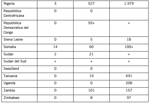 A livello riassuntivo il totale delle esecuzioni avvenute nel continente africano nel 2016 (Fonte: Report sulla Pena di Morte di Amnesty International).