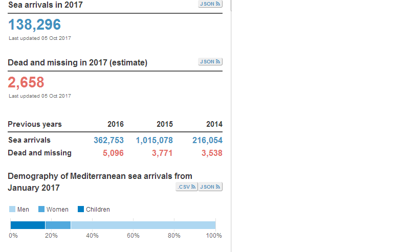 138. 296, il numero aggiornato al 6 ottobre degli arrivi via mare nel 2017 . L’Italia si trova in testa con 106.459 persone arrivate alle sue coste, seguita da Grecia e Spagna.