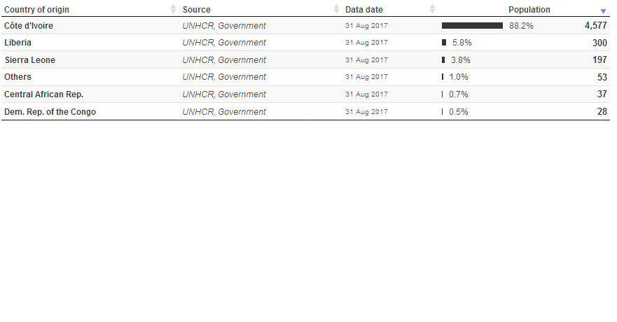 La Guinea, in seconda posizione, nel 2017 ha accolto circa 5.192 rifugiati, quasi tutti provenienti dalla Costa d’Avorio.