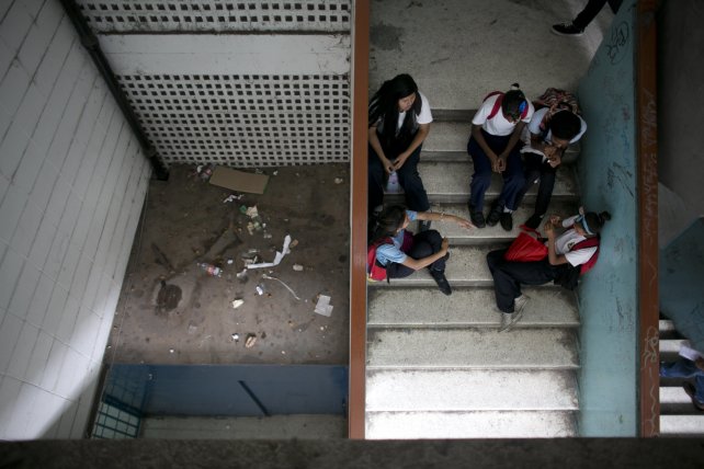 La crisi economica e sociale che vive il popolo venezuelano ha colpito pesantemente la scuola pubblica e ultimamente anche la privata. In tutto il paese si verificano infrastrutture in collasso, gli edifici che ospitano le scuole e/o le università sono in condizioni precarie, aule, palestre, laboratori… cadono a pezzi. Bagni insalubri, mancanza di acqua e manutenzione in generale sono le caratteristiche comuni. Non esistono più strumenti e attrezzature per i diversi laboratori scientifici e artistici, perché? Perché la delinquenza fa tabula rasa. Sistematicamente, nelle zone più popolari e non solo accadono furti quasi quotidiani: attrezzature, sedie, tavoli, computer, telefoni, lampade, lavagne, ecc. A volte gli stessi studenti sono i delinquenti. I bambini e adolescenti hanno grossi problemi di denutrizione, a casa mangiano poco e male, il più delle volte fanno un pasto al giorno, quindi non riescono ad essere attenti alle lezioni e le loro prestazioni sono al minimo e si verificano innumerevoli casi di svenimento a causa della mancanza di forze. Le mense scolastiche hanno chiuso a causa della crisi alimentaria che c’è nel paese, quindi questi ragazzi non mangiano nemmeno a scuola. Meglio tenere i figli a casa per evitare incidenti. C’è una percentuale alta di assenza di insegnanti nelle cattedre a causa della carenza di cibo e medicine, anche loro sono essere umani e hanno famiglie a carico, anche loro devono perdere ore e ore ogni giorno nelle code per comprare cibo e/o medicine, se si trovano, entrando ed uscendo da diversi supermercati per fare una minima spesa, per cui, a volte, a scuola non possono andare, a questo si aggiunge il deterioro dello stipendio che oscilla i 36$ al mese per una maestra di elementare, stipendio che è poco meno dello stipendio minimo di 37$ (alla tassa ufficiale di cambio). L’inflazione nel paese è arrivata nel 2017 al 366%, i genitori non hanno possibilità economiche per comprare il materiale scolastico, i libri e le divise necessarie perché il tutto potrebbe costare circa 184$ a figlio, cinque volte tanto lo stipendio medio… Quei genitori che vorrebbero mandare i loro figli alla scuola privata ovviamente non possono pagare l’iscrizione e l’anno scolastico.