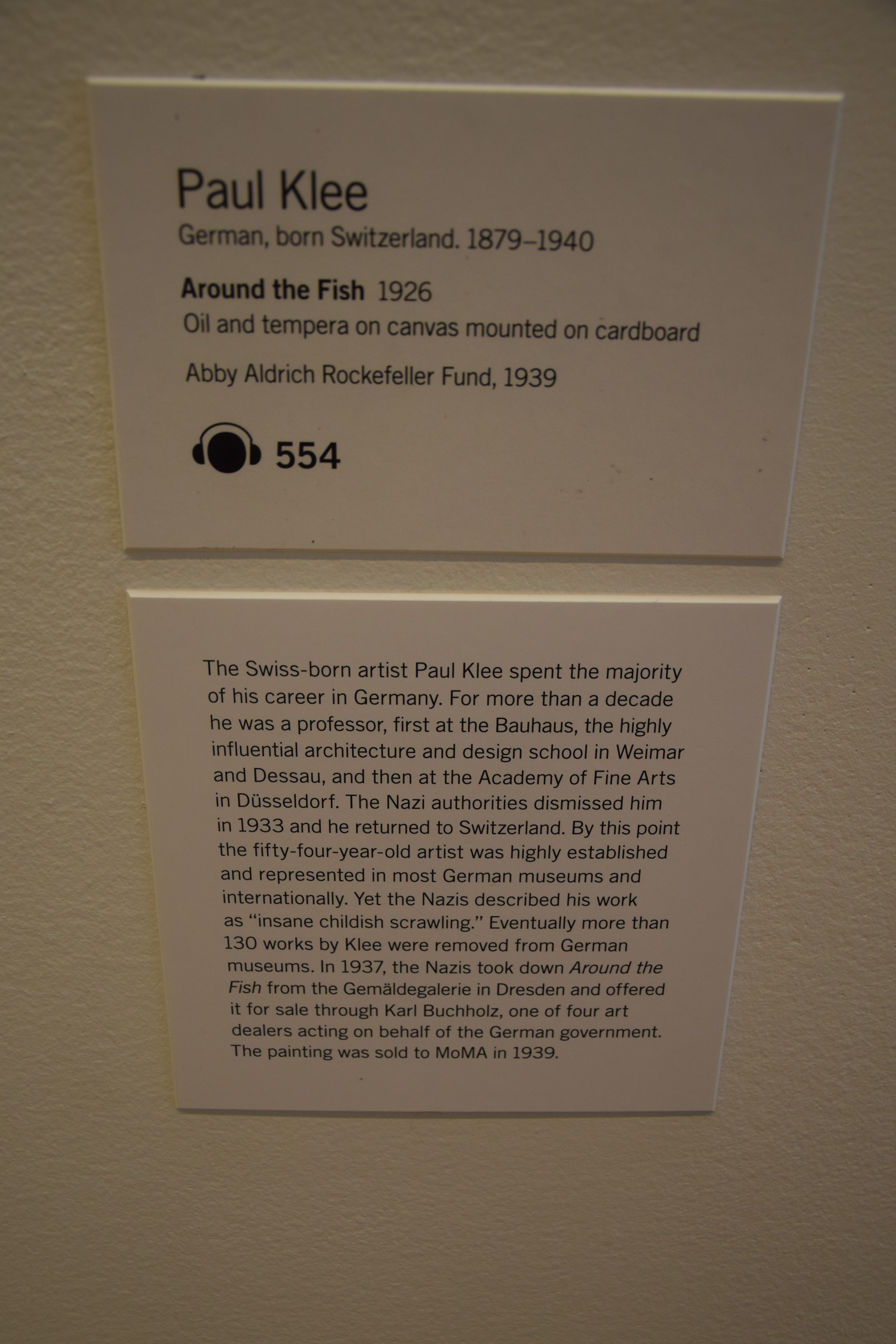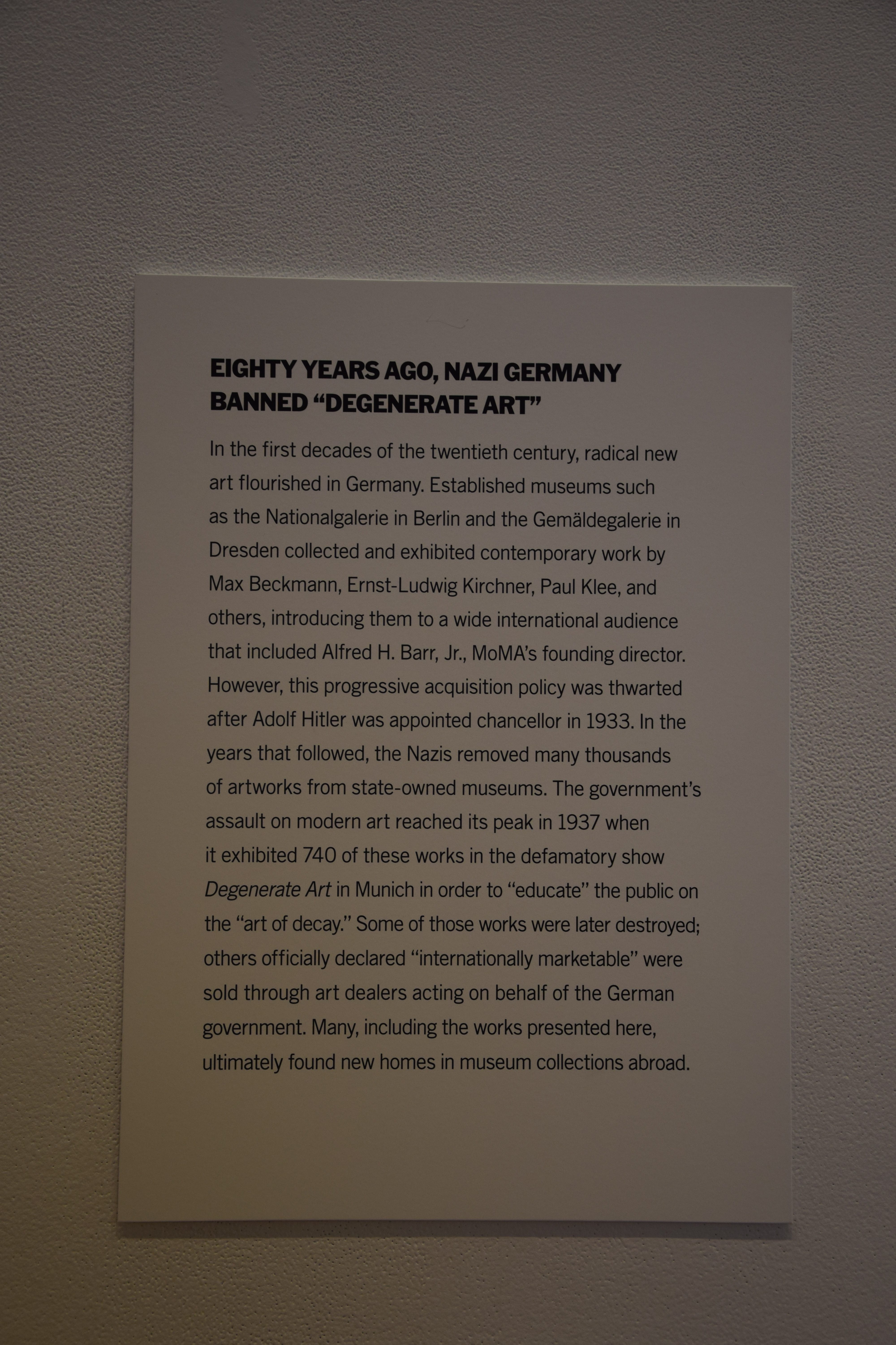 Mentre in Italia ( e in altre aree del mondo) si verificano rigurgiti di fascismo – allo stadio, nelle strade, nelle parole – noi pubblichiamo le immagini di una mostra permanente del MOMA di New York. Permanente: perché l’Arte, come la Cultura in toto, deve far riflettere e ricordare quali siano state le conseguenze tragiche per l’umanità del corso della Storia, quella parte di Storia nefanda e distruttiva che tende a ripetersi. Ma la Storia siamo noi; la Storia la scriviamo noi, giorno per giorno, con i nostri pensieri e con le nostre azioni.