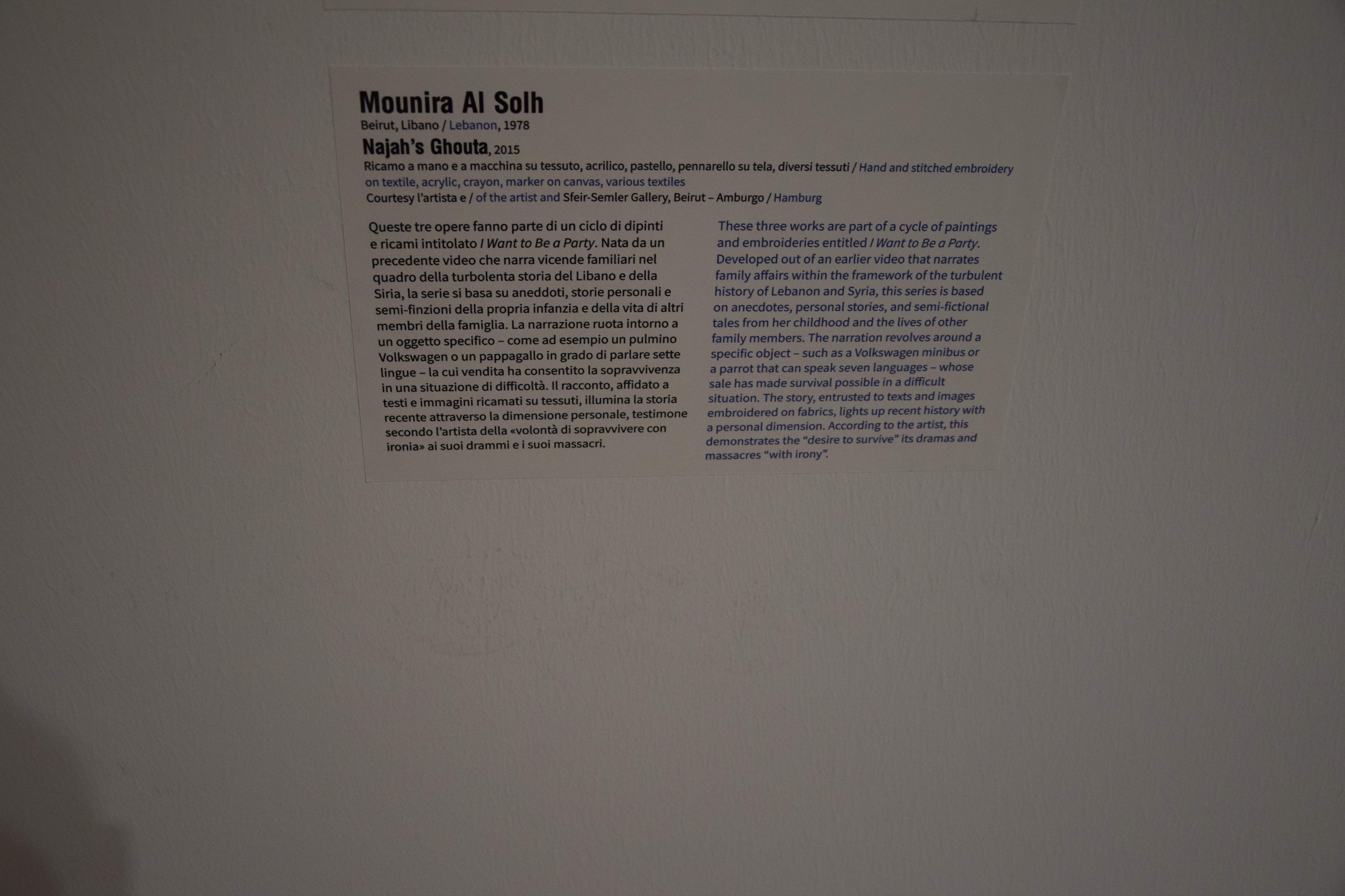 Artisti contemporanei di grande fama, quali: Etel Adnan, Haig Aivazian, Tamara Al-Samerraei, Mounira Al Solh, Mona Hatoum, Roy Dib, Walid Raad e molti altri per riflettere sul non-senso dei conflitti, sulle loro conseguenze, sui rapporti con la comunità internazionale e sulla geopolitica, sulla ripresa economica e sociale. E sempre sull’affermazione dei diritti.