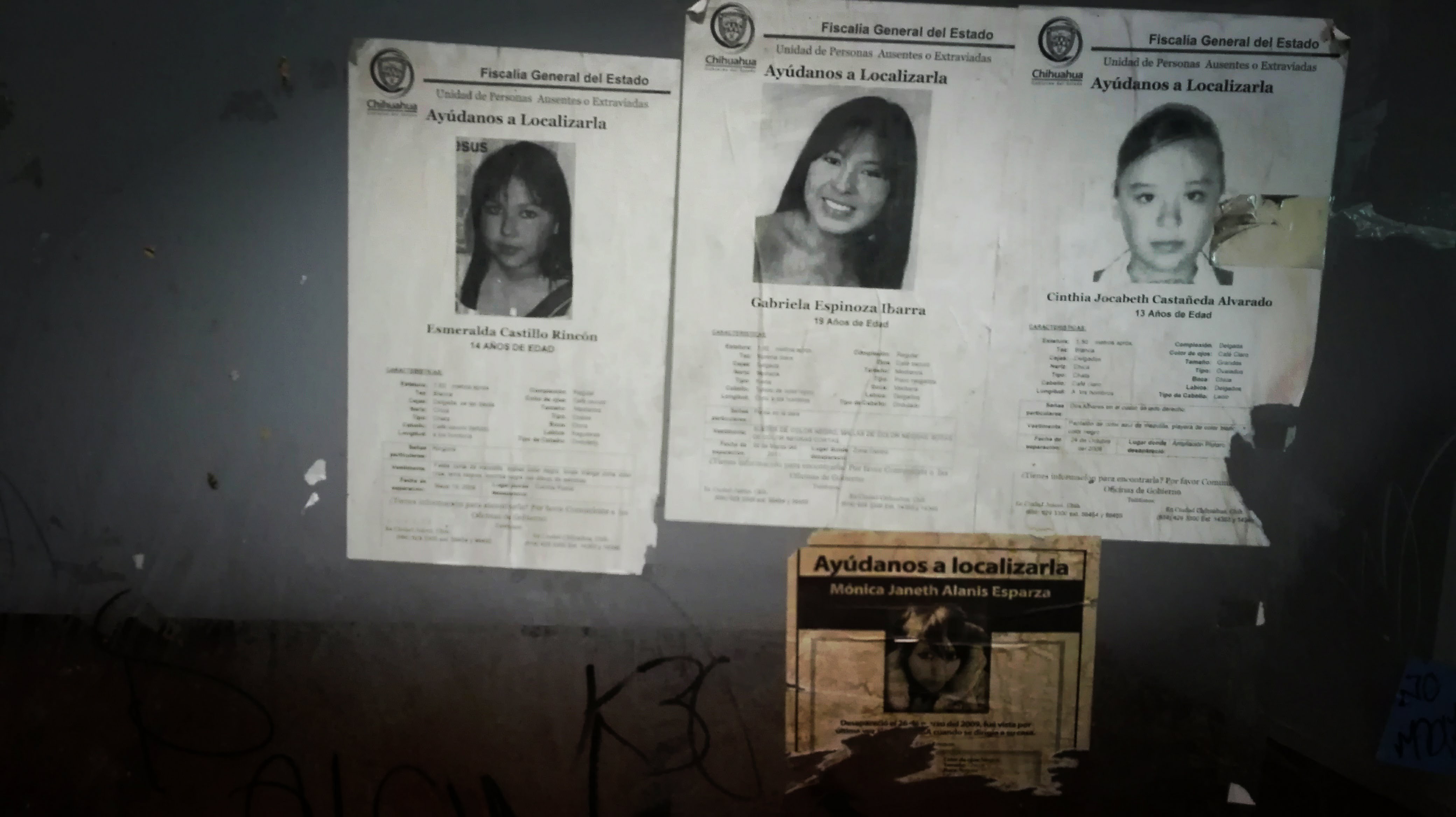 Un’installazione composta da elementi visivi e sonori che tratta il tema della violenza contro le donne. Dai primi anni ’90 ad oggi so contano migliaia di bambine e ragazze, vittime, tra gli 11 e i 25 anni. Otto pensiline ai bordi delle strade di Ciudad Juárez, con lastre polverose a cui sono attaccati appelli per il ritrovamento delle donne, spesso ritrovate prive di vita nel deserto che circonda la città.