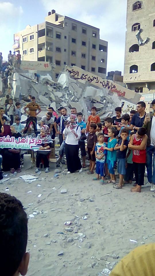Nella citta’ intanto la vita e’ ripresa, dopo la paura dei forti attacchi promessi su tutta la striscia, le parti hanno fermato il fuoco, per il momento, ma quello che rimane sul campo purtroppo sono ancora macerie e distruzione. In molti si chiedono come mai hanno colpito un luogo neutrale, non militare, che per anni e anni ha offerto solo un servizio culturale e sociale agli abitanti . Nella logica della punizione collettiva, questo tipo di attacchi militari, con risposta dell’avversario, devono essere evidenti alla popolazione; questa la logica della distruzione del centro culturale “Al Mesahal”, di giovedì scorso, e quella dell’Art&Craft della settimana scorsa. Due luoghi cari e utili, che sicuramente la gente apprezza più’ dei luoghi militari costruiti intorno.