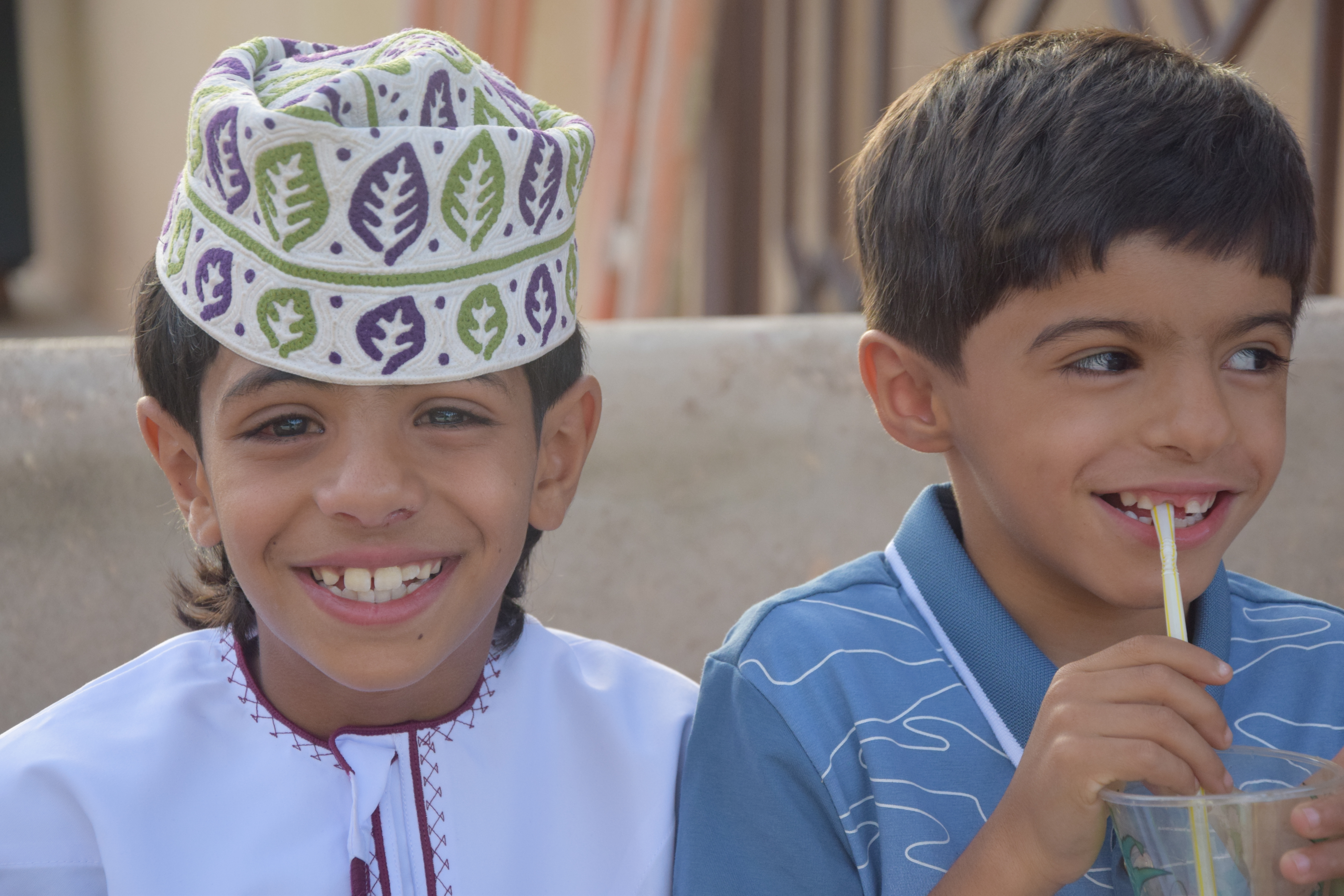 Muscat è la capitale: qui, chiaramente, l’apertura mentale è più ampia rispetto alla situazione nei villaggi, dove si vive di allevamento, pastorizia, agricoltura e di pesca. Tutto quello che offre la Natura meravigliosa e sorprendente dell’Oman. In città, vivono e lavorano i professionisti e, in tutto il territorio, i lavori nelle strutture turistiche e i mestieri umili vengono svolti dagli immigrati, per lo più pakistani. Su questo punto c’è il dubbio su quanto siano rispettati i loro diritti. Altra nota dolente, in Oman vige ancora la pena di morte e la libertà di espressione è limitata. Insomma…luci e ombre, ma i volti delle/i bambine/i e delle/i ragazze/i – che sono sempre speranza di un Futuro migliore – fanno aprire il cuore.