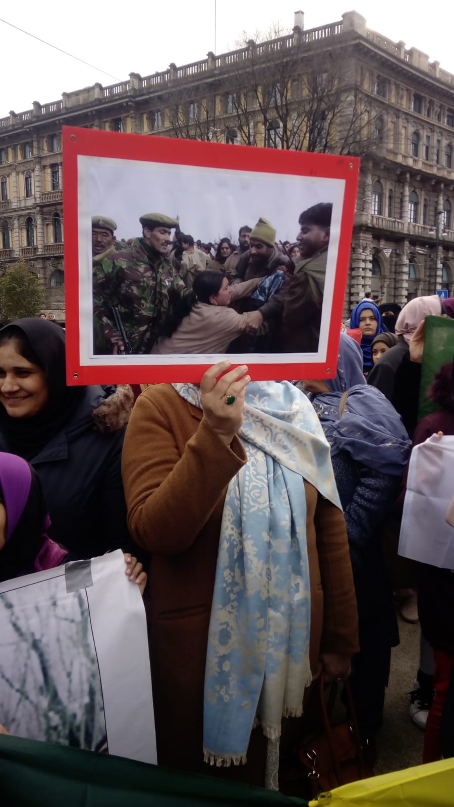 Sul palco allestito per l’occasione, diversi interventi di esponenti di associazioni a favore dell’indipendenza del Kashmir, pacifisti, cittadini solidali con la causa, sia italiani sia pakistani e anche di altre nazionalità. Le comunità presenti a Milano in piazza domenica, uomini, donne e giovanissimi, denunciano i soprusi e le violenze dell’esercito indiano sulla popolazione Kashmiri, mostrano le foto di atti violenti su civili inermi e invocano l’applicazione delle risoluzioni dell’ONU sull’autodeterminazione del Kashmir. Gli slogan proclamati a più riprese richiamano alla pace, alla libertà del Kashmir, e incitano l’India al ritiro dell’esercito.