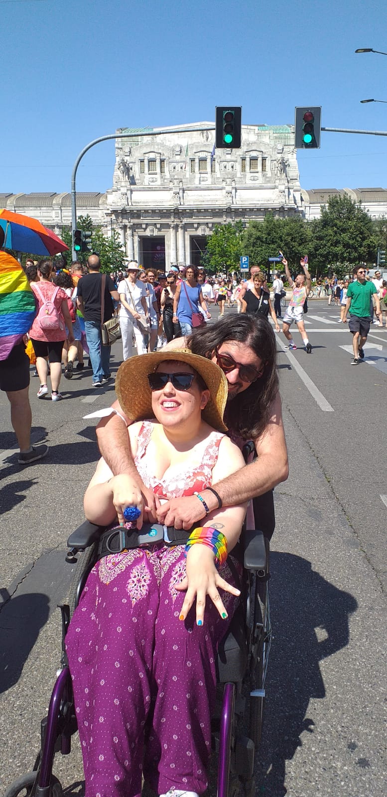 Finalmente posso dire di aver realizzato un mio sogno: sono una donna di 35 anni disabile motoria e ho partecipato al mio primo Pride. Quello che una volta veniva definito “Gay Pride”, ora assume una connotazione più generale. Per anni la manifestazione ha sancito la rivendicazione dei diritti delle persone omosessuali appunto; andando avanti col tempo, la manifestazione ha raccolto le istanze di tutte quelle persone che si sentono emarginate e discriminate dalla società, come ad esempio le persone no binary le persone cisgender le persone bisessuali ed infine le persone queer (proprio in quest’ultimo termine vengono incluse anche le persone con disabilità), cioè persone diverse dai canoni standard estetici e sociali di una cultura egemone.