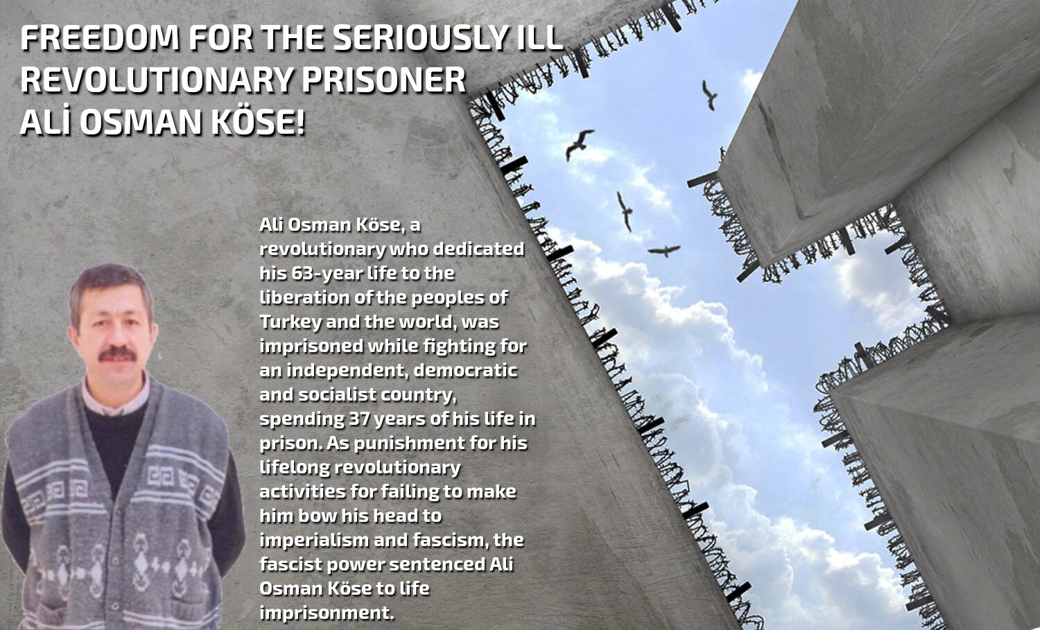 Riceviamo dal comitato solidale Grup Yourum e divulghiamo. https://mail.google.com/mail/u/0?ui=2&ik=cb3878bb60&attid=0.1&permmsgid=msg-f:1697770526328308557&th=178fb14c6bed434d&view=att&disp=inline&realattid=178fb11290f45fd24721 APPELLO URGENTE ALL’AZIONELIBERTA’ PER ALI OSMAN KÖSE CHE HA RESISTITO PER 37 ANNI ALLA VIOLENZA E ALLE TORTURE DELLO STATO FASCISTA TURCOAZIONI DI SOLIDARIETA’ INTERNAZIONALI...