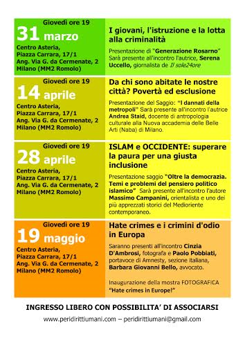 Associazione per i Diritti umani in collaborazione con Centro Asteria, propone 4 incontri formativi rivolti a Docenti – Studenti sui temi di attualità e legati ai diritti umani. A chi seguirà gli incontri verranno...