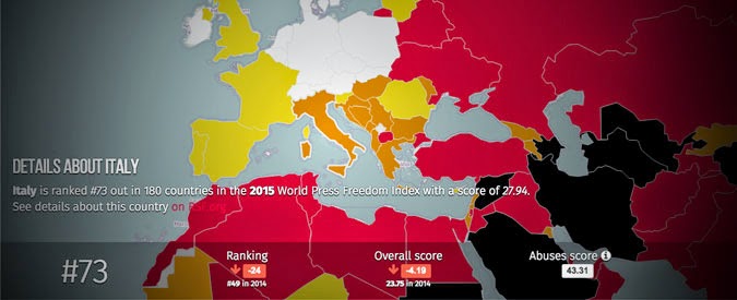 Secondo il rapporto sulla libertà di stampa redatto da Reporter Senza Frontiere, l’Italia scende al 73°posto nella classifica dei Paesi nel mondo, posizionandosi tra Moldavia e Nicaragua: “La situazione dei giornalisti è peggiorata nettamente...